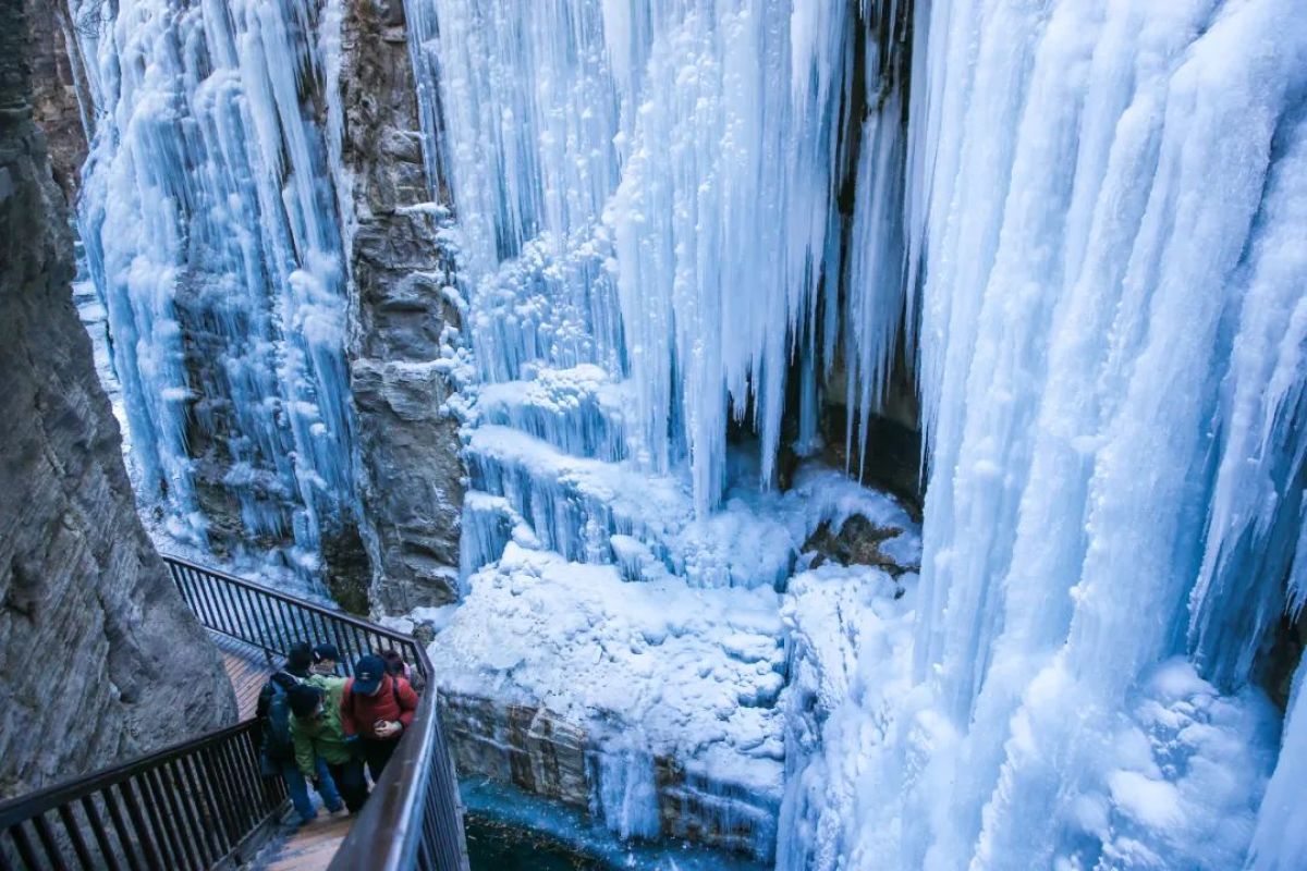 在安阳林州太行大峡谷幽静的世界里,冰河,冰挂随处可见,冰川、冰柱、冰凌,或镶嵌在高崖之上,或悬挂于峡谷两侧,展现出冬季里壮观的秀美。