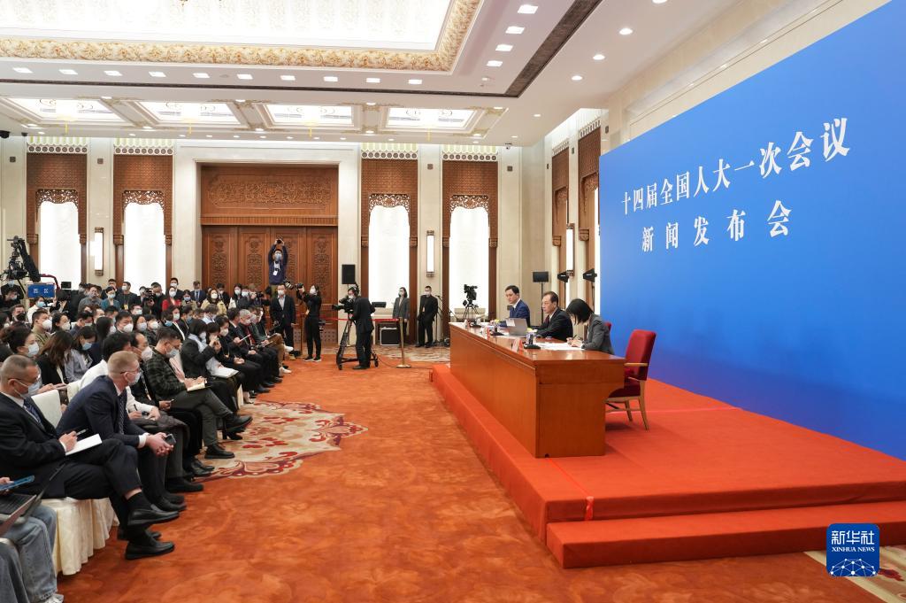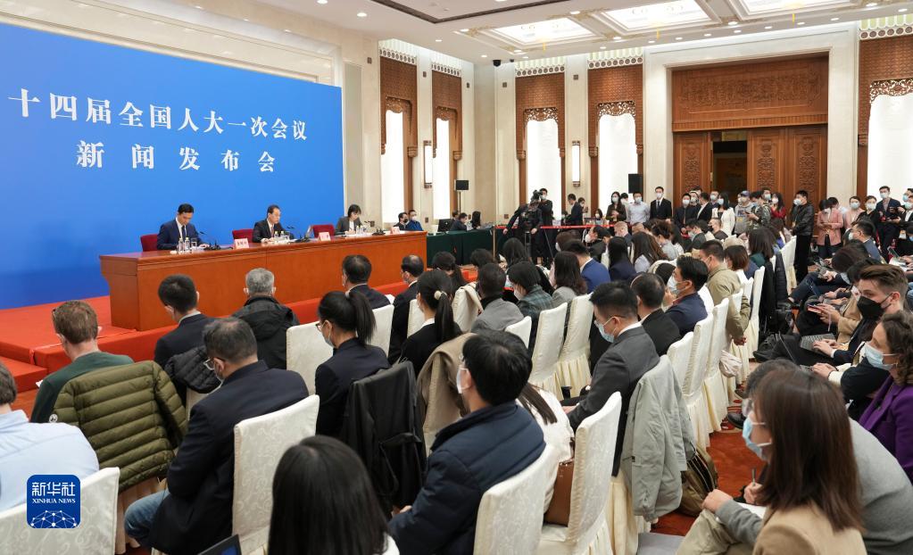 3月4日,十四届全国人大一次会议在北京人民大会堂举行新闻发布会。大会发言人王超就大会议程和人大工作相关问题回答中外记者的提问。