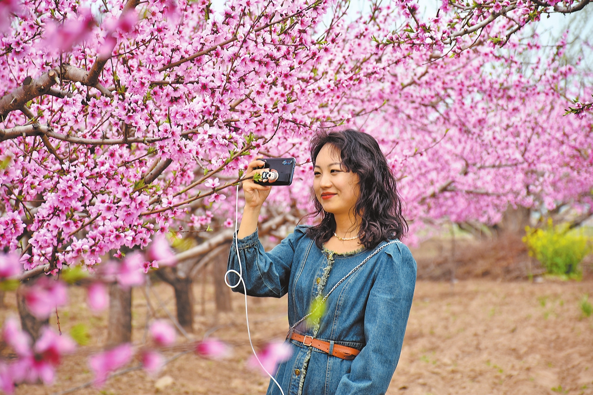 阳春三月桃花俏。近日,周口市西华县、鹿邑县多地桃花盛开,争奇斗艳、美不胜收。灿烂的花海吸引来了许多观光打卡的游客,为当地文旅产业发展提供助力。不少乡镇以花为媒,探索出一条“农文旅”融合发展之路,增强发展后劲,有效促进乡村振兴。图为西华第十九届桃花节期间,在黄桥乡桃花源生态风景区万亩花海打卡拍照的游客。