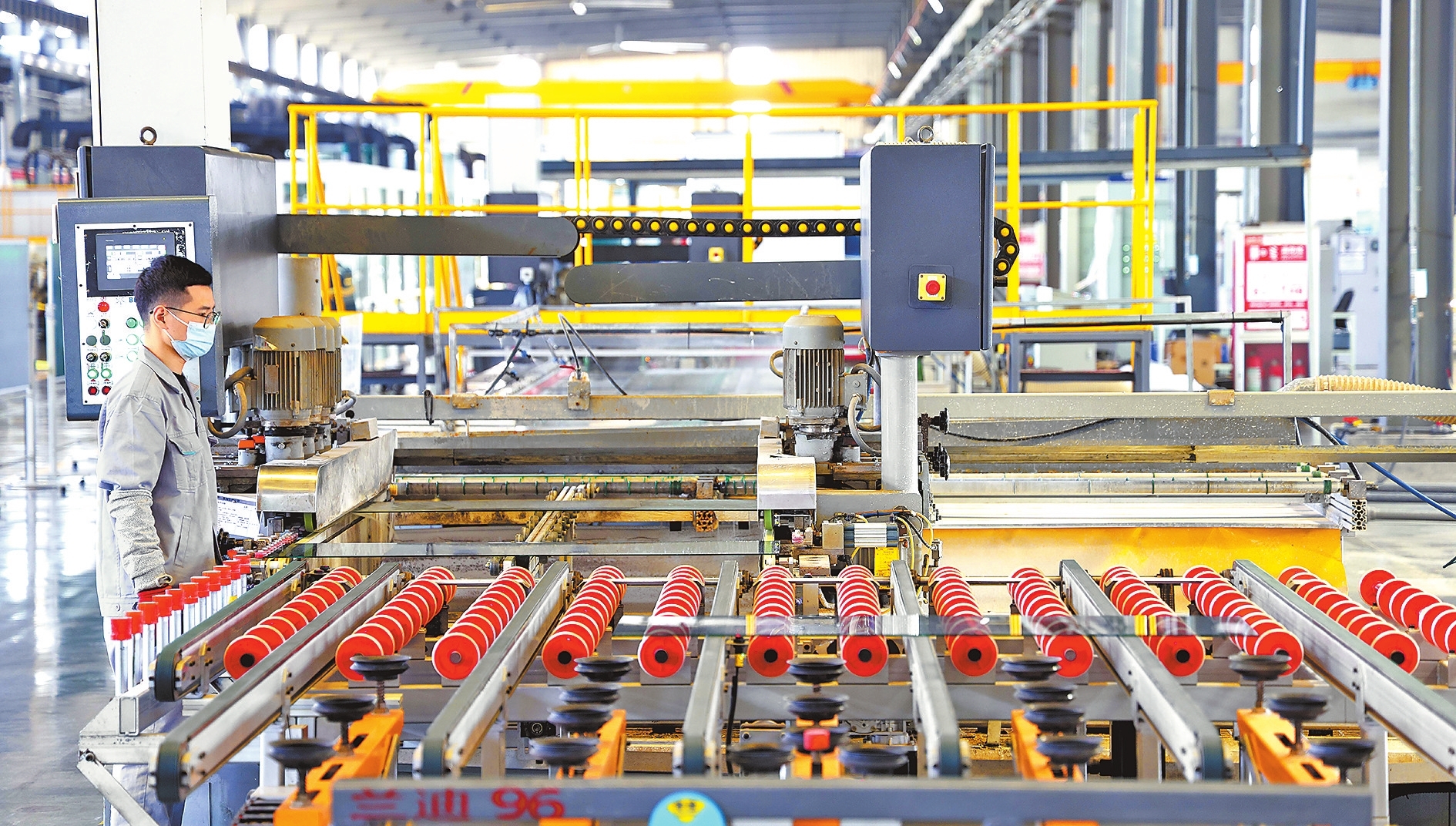3月28日,位于洛阳市伊滨区的洛阳兰迪玻璃机器股份有限公司钢化真空玻璃生产车间,工人在加紧订单生产,开足马力应战产销旺季。今年以来,该公司订单不断,钢化真空玻璃生产订单总量是去年同期的4倍,交易额再创新高。张光辉 张若含 摄
