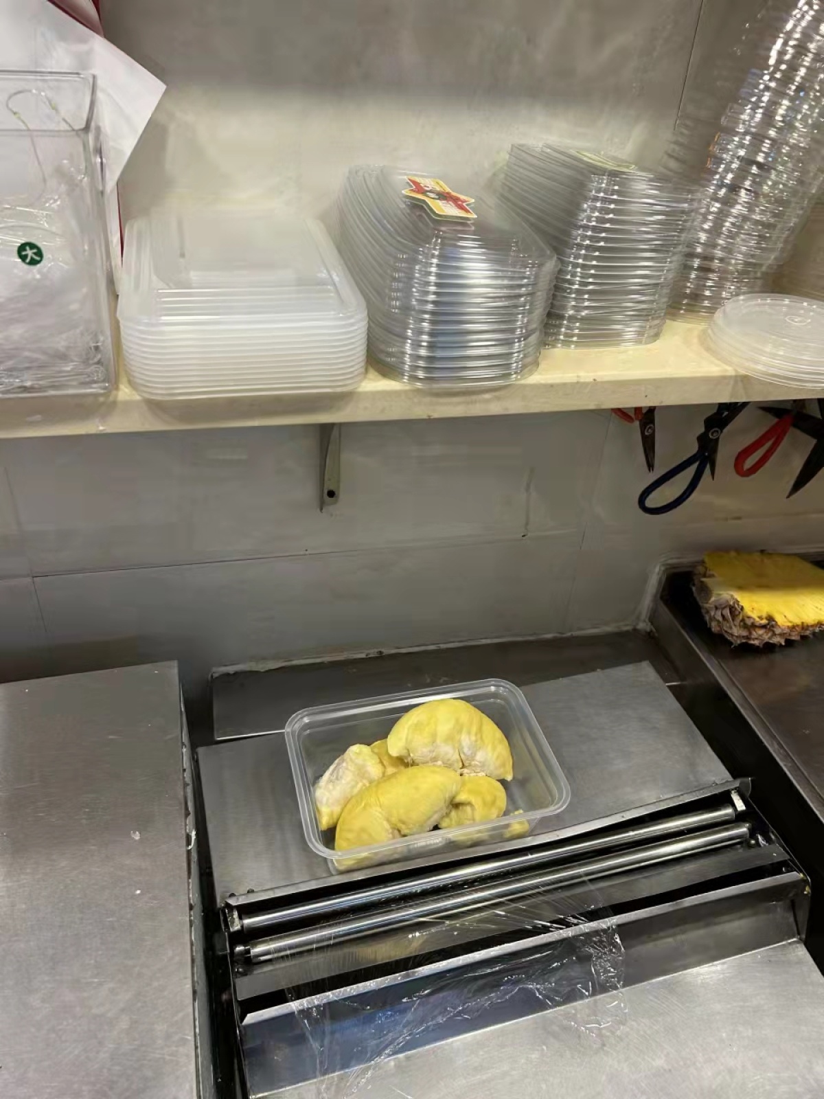 可让她没想到的是,就在店员打开榴莲打包时,她发现店员是直接用保鲜膜封口,而不是用打包盒配套的盖子。于是,她就问了一句,店员回复却是;“要盖子需要再加1元。”