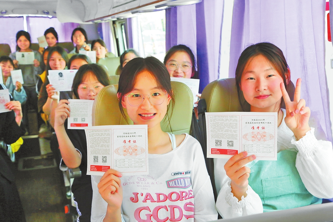6月6日,宝丰县第一高中校区,考生乘坐“爱心助考”车前往考点,提前熟悉环境。 王双正 摄