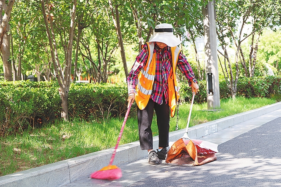 图③ 郑州街头,环卫工人在清扫街道。本报记者 聂冬晗 摄
