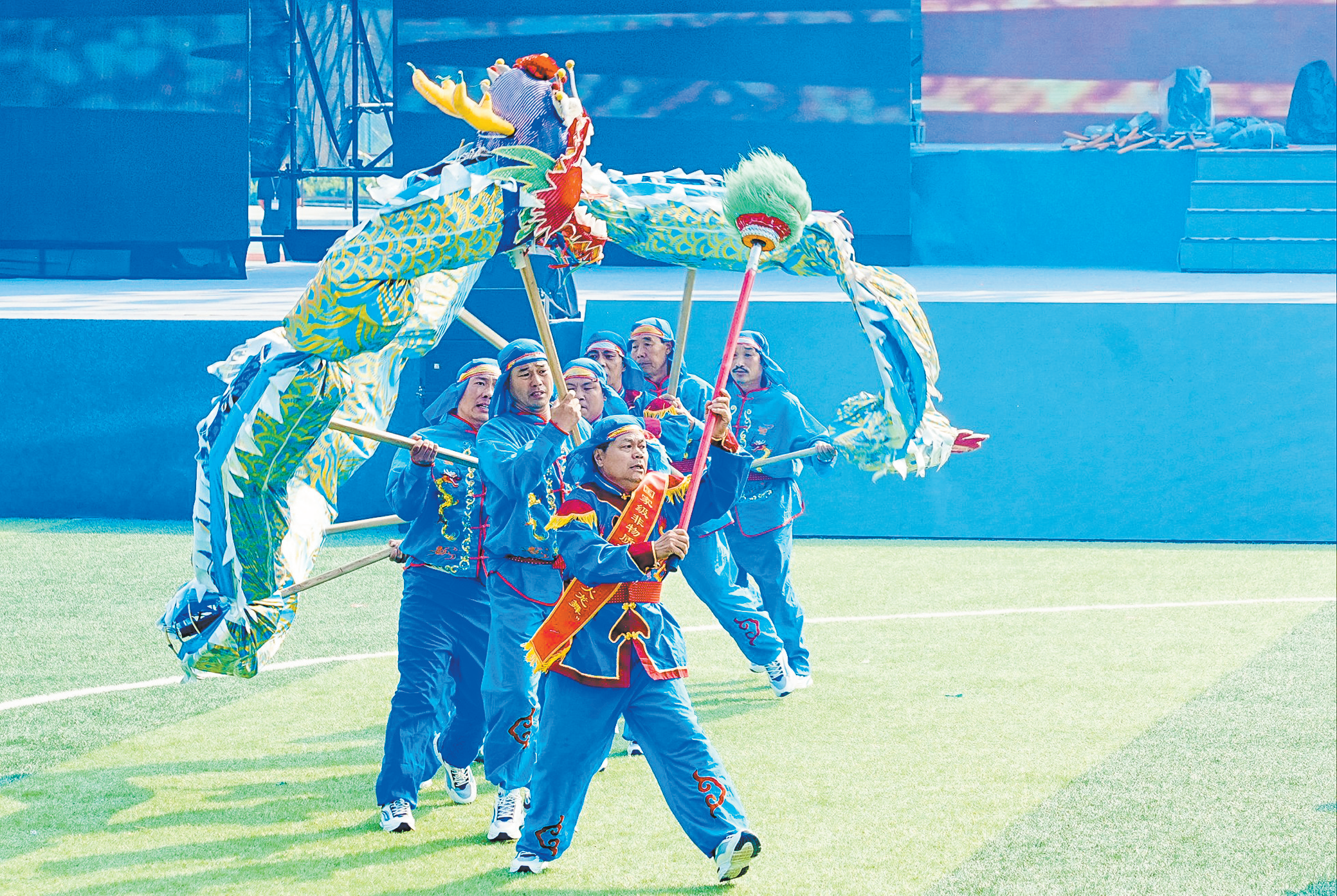 9月16日,孟州市槐树乡龙台村的火龙舞在河北省邯郸市曲周县凤凰艺术中心体育场激情上演。此次“龙舞邯郸相约曲周”全国龙舞(国家级非遗项目)展演赛,旨在弘扬中华优秀传统文化,展现国家级非遗项目龙舞的巨大魅力,探索龙舞的传承与发展,吸引了来自7个省共15支龙舞队伍前来参赛,龙台村的火龙舞队是我省唯一受邀参赛的队伍。本报记者 冯佳志 通讯员 张泽斌 摄