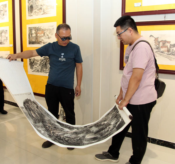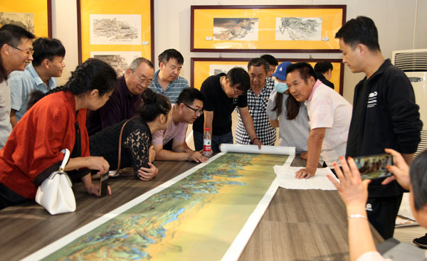 桂行创说,此次走进卫辉对基层画家进行辅导,很是触动。卫辉的美术氛围很好,喜欢绘画的人很多。最让我感动的是,他们对绘画热爱的态度很执着。有位爱好者临摹的《千里江山图》拿给我看,很震撼,虽然技法有所欠缺,但能耗费那么长时间去临摹一幅长卷非常不容易。还有的作者用手机在网上下载一些图片进行临摹,手机屏幕那么小,细节很难看的清,就这样他们仍然在坚持一点一点的学习,精神很值得鼓励。