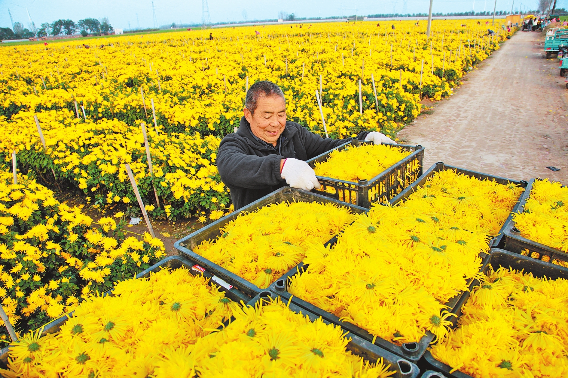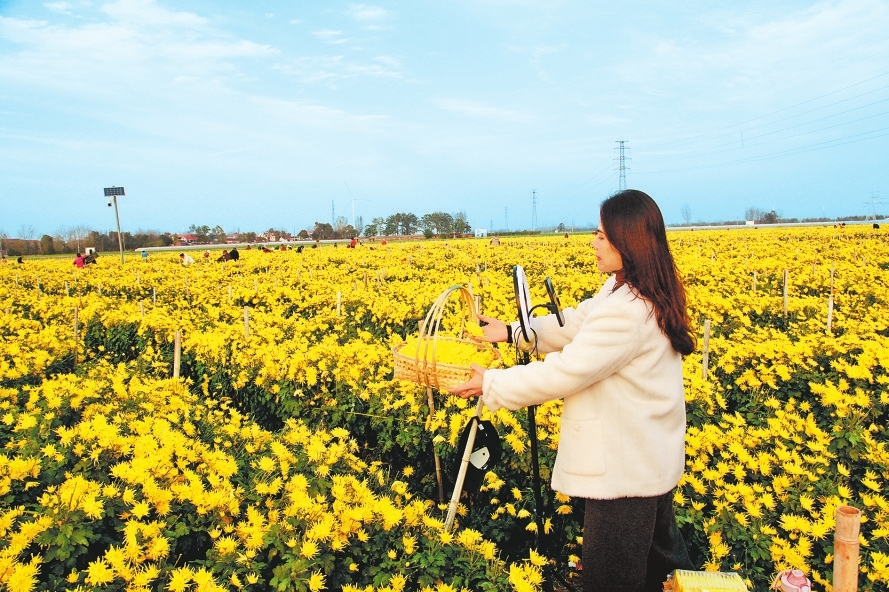 本报讯(记者 杨之甜 通讯员 张慧勇)11月14日,滑县留固镇第三营村皇菊种植基地的金色皇菊迎来丰收。借助优渥的自然条件,留固镇整合100万元项目资金,大力发展菊花特色产业种植,在第三营村实施了菊花初加工村集体经济发展扶持项目。该项目通过“党支部+公司+生产基地+农户”的方式,打造了200亩集菊花种植、加工、销售、配送于一体的种植基地,在形成村里金丝皇菊特色产业的同时,直接带动周边100余户村民在家门口实现就业增收。