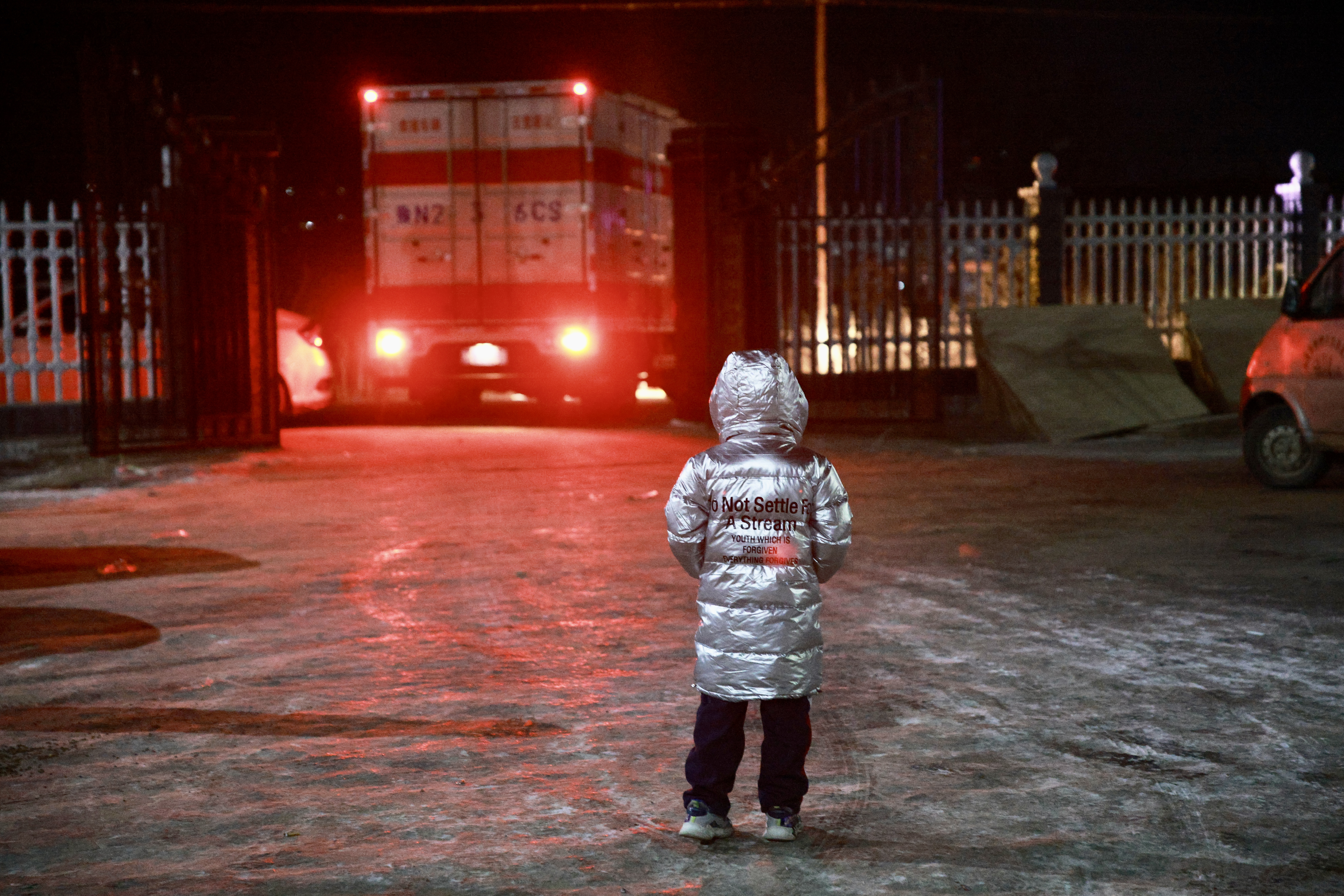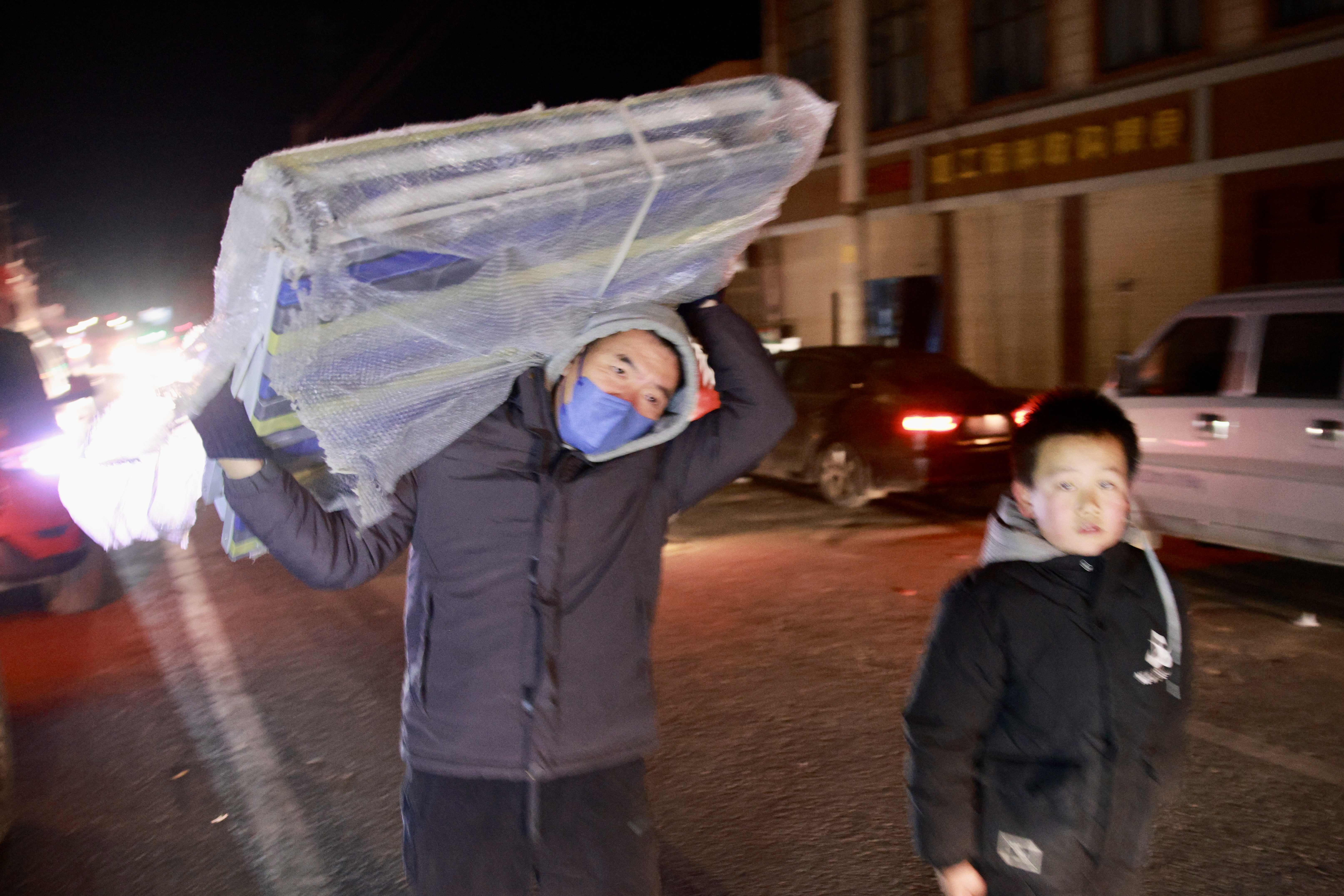 入夜,气温降到零下18度。吹麻滩镇后阳洼村的村民裹着棉被等待即将到来的河南救援队。