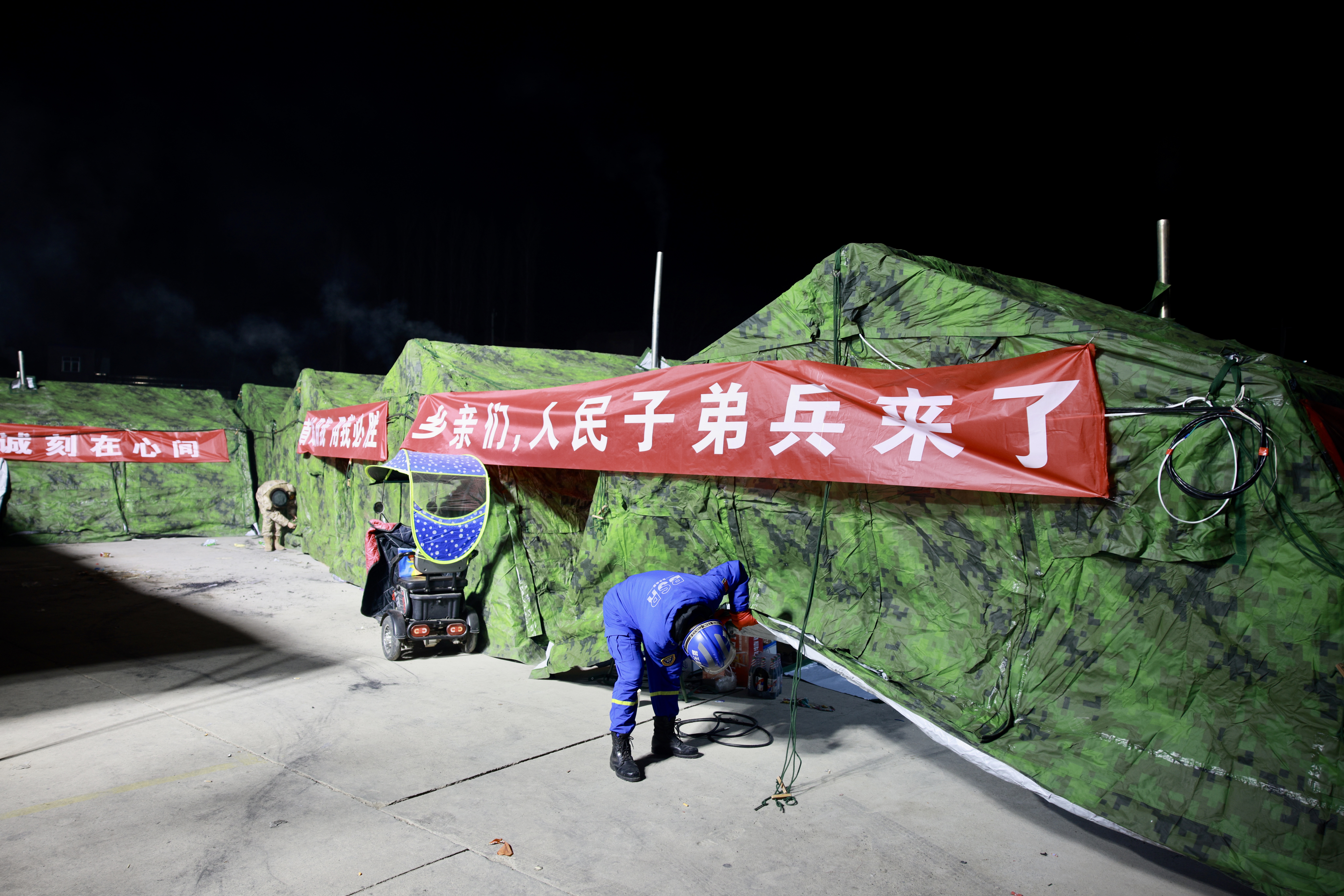12月20日凌晨3时15分,气温降到零下15度,寒冷冬夜的漆黑夜空下,处于震中的积石山县大河家镇灾后临时安置点却灯火通明。