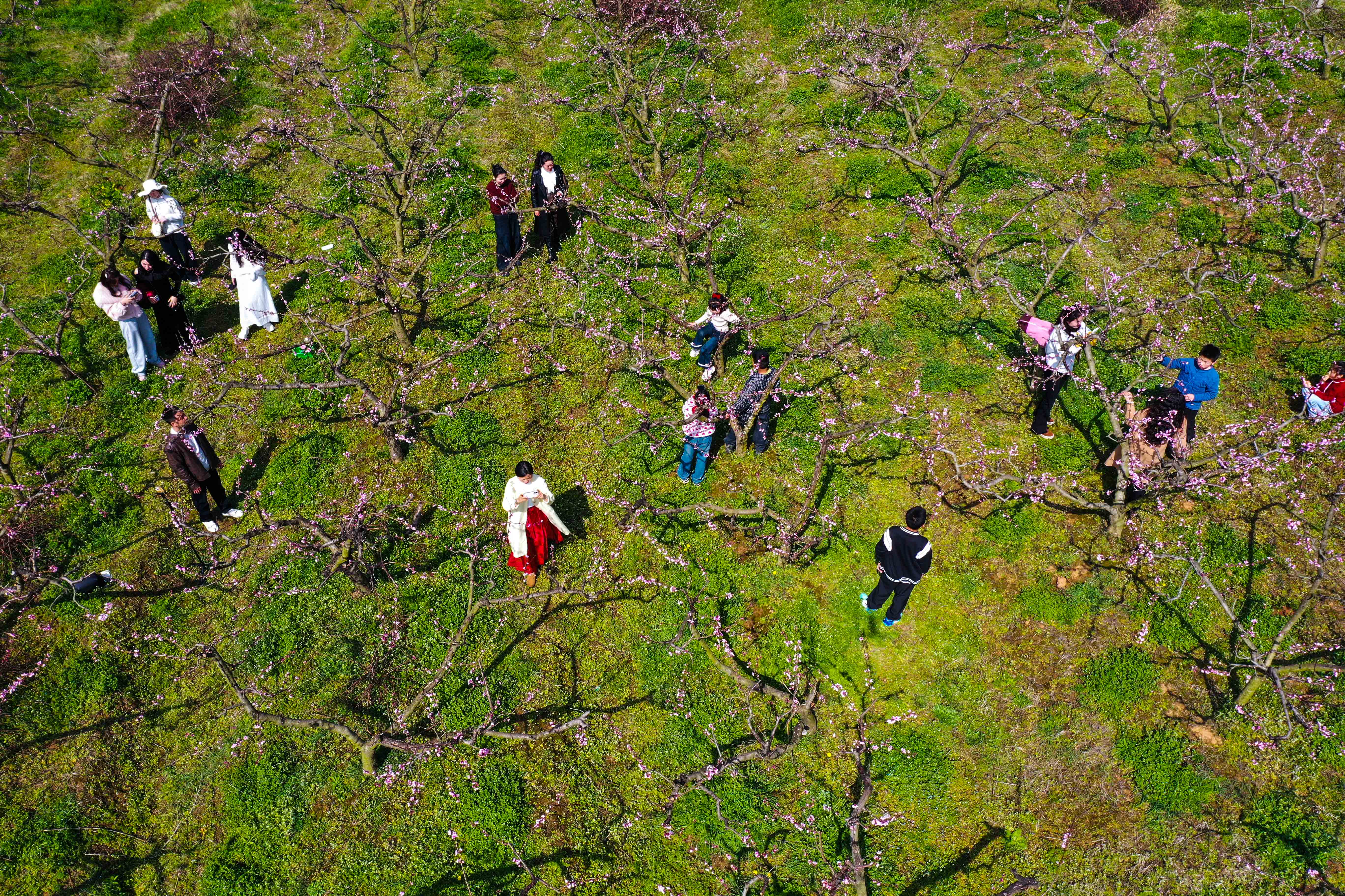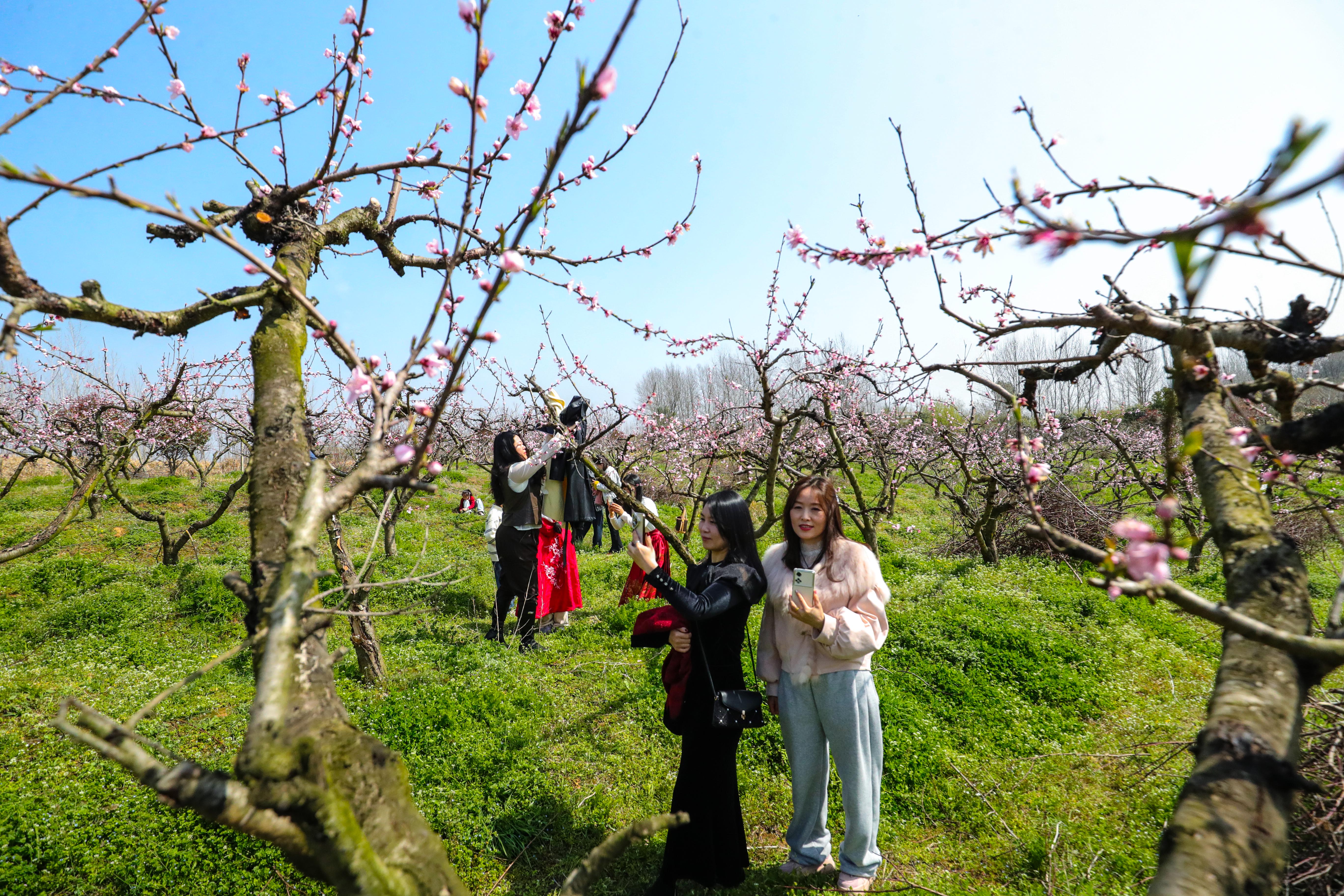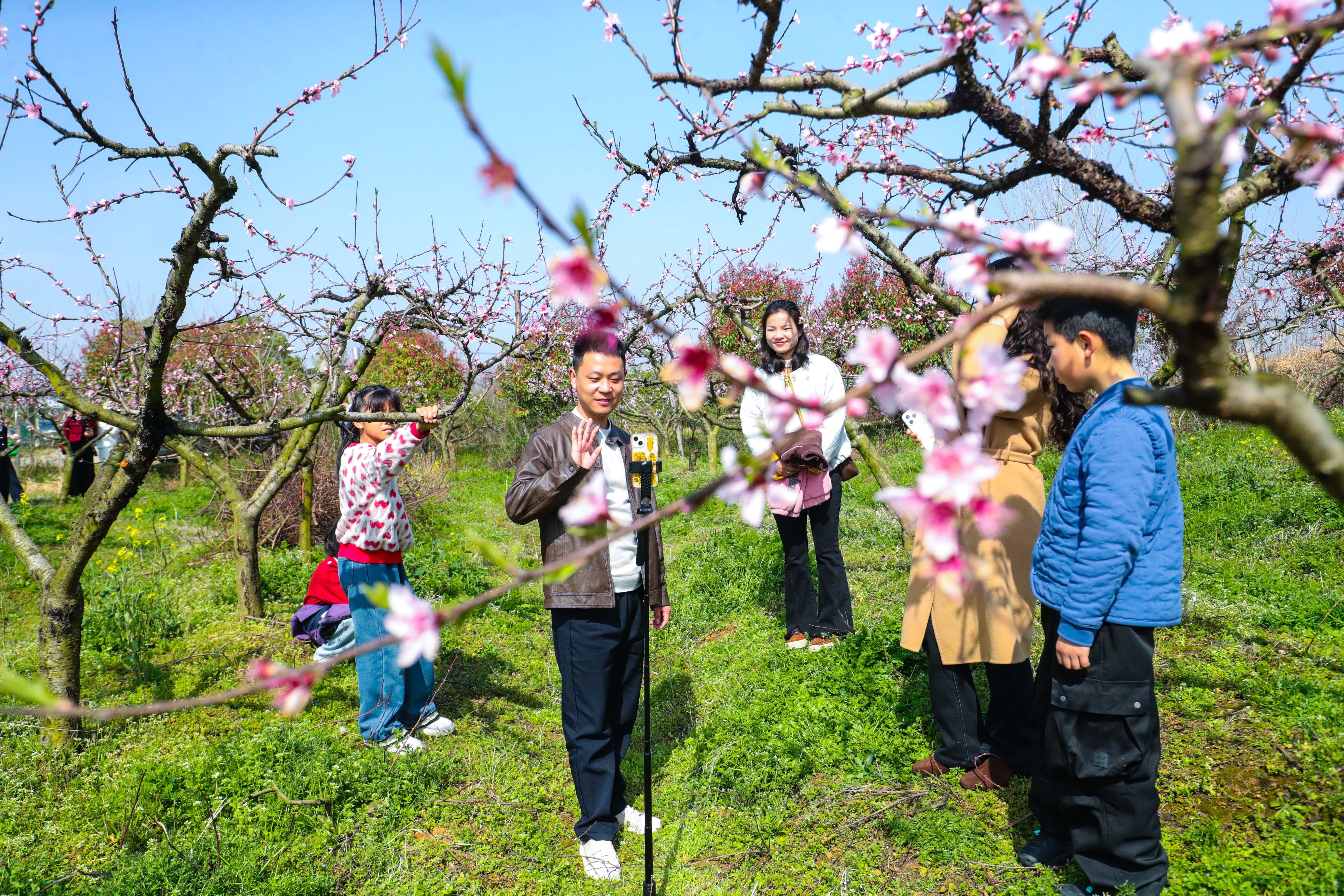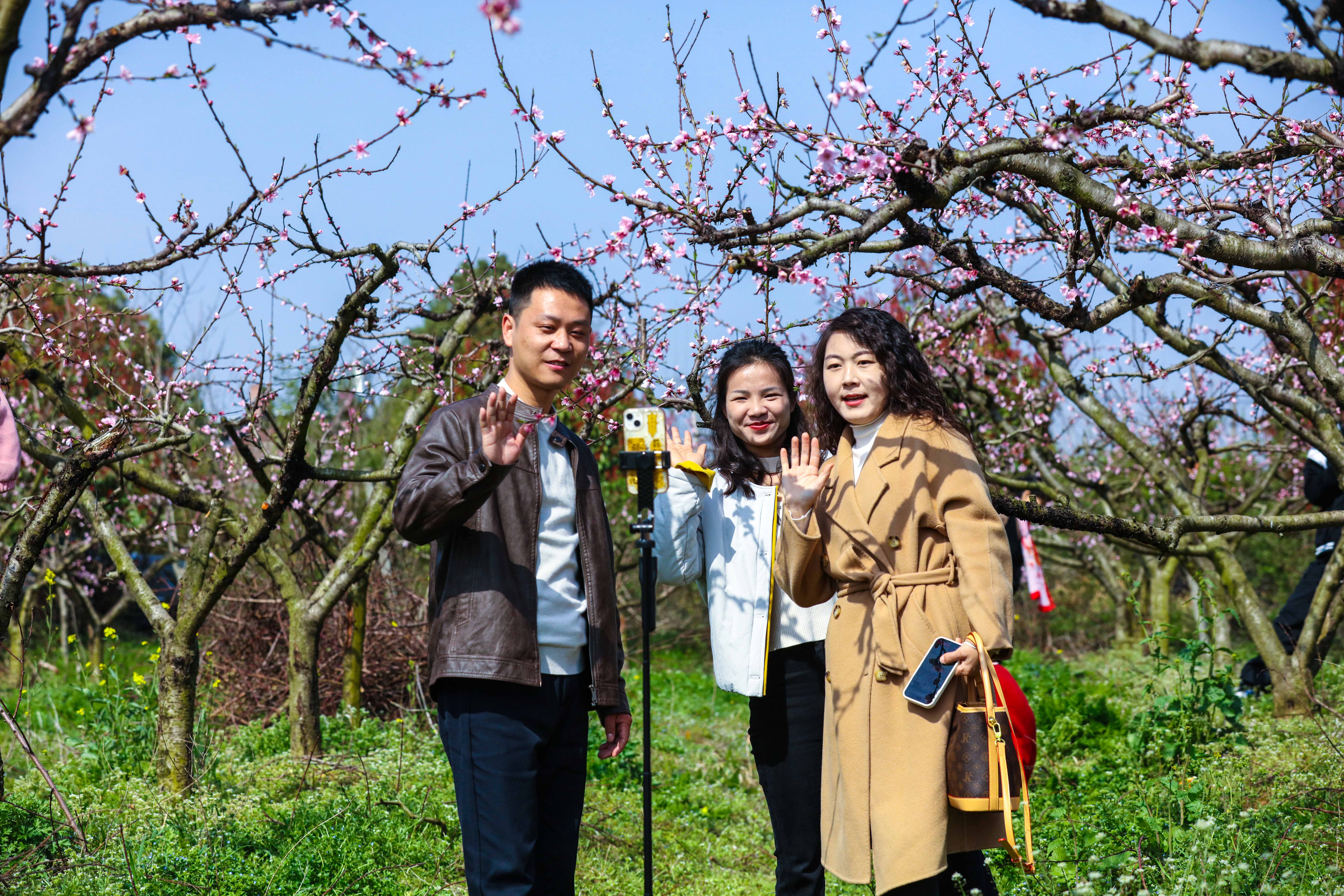 大河网讯 3月21日,游人在河南省信阳市光山县槐店乡刘高山村桃园里赏花拍照。春暖花开时节,人们纷纷来到户外踏青赏花,畅游在连绵的花海里,呼吸着醉人的清新空气。桃花朵朵笑春风,人面桃花相映红。大家纷纷拿起手机相机,拍短视频,发抖音、朋友圈,争先恐后要把眼前这迷人的景色与远方的亲朋分享,欢声阵阵、笑语连连,直把桃园变成了春日赏花嘉年华,乐享春光。(谢万柏/文图)